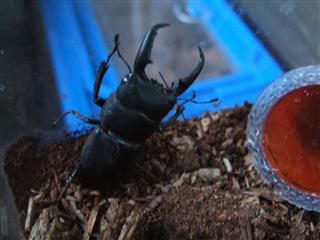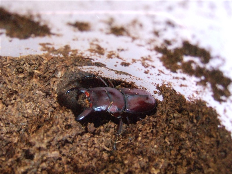 飼育ケースには15センチ程度のマットを入れ、朽木を数本埋めてあるが、まだ産卵は