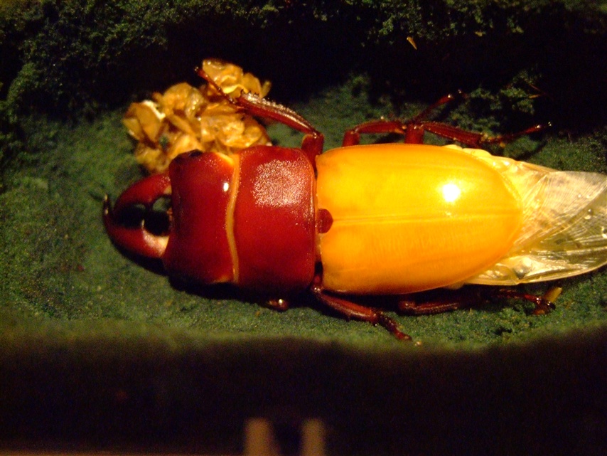 去年生まれた幼虫のうち、成虫まで育ったのは数匹だった。原因は、多頭飼育したケースが初夏の暑さで蒸れて幼虫が大量に死んでしまった。
